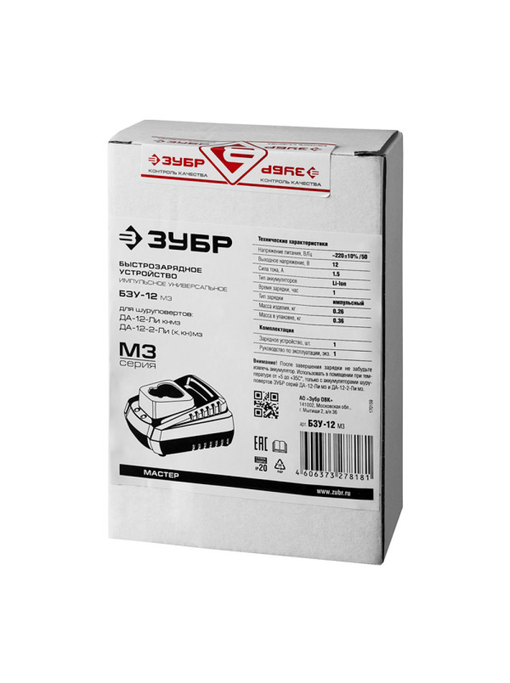 Быстрозарядное устройство ЗУБР МАСТЕР БЗУ-12 М3