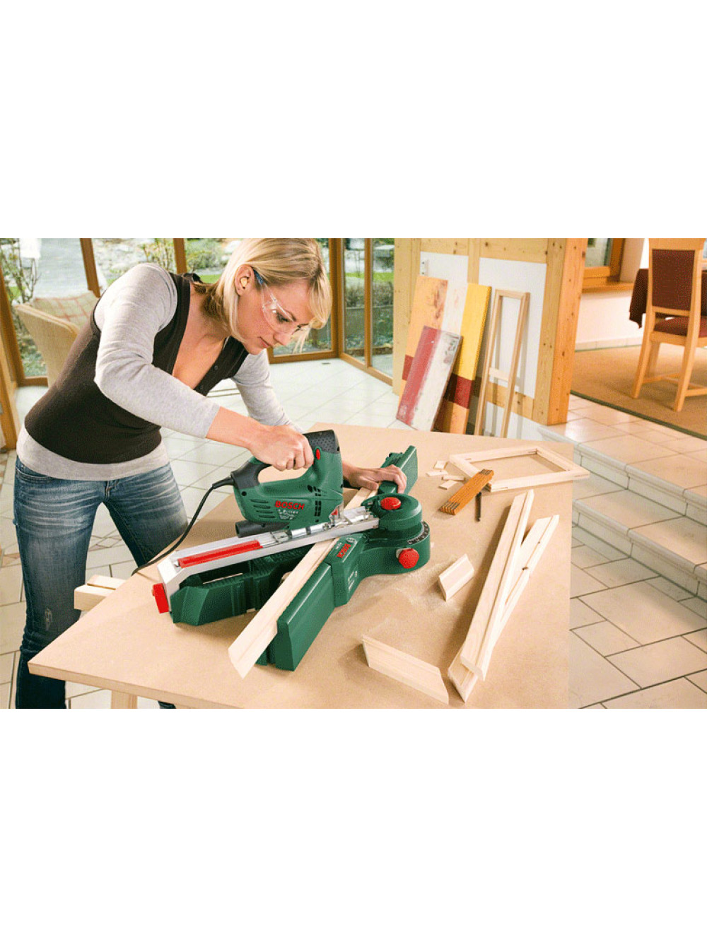 PLS 300 — это практичная установка для высокоточных торцевых, угловых и косых пропилов, которая станет идеальным дополнением для лобзиковых пил Bosch из ассортимента инструментов для домашней мастерской. С PLS 300 пропилы с помощью лобзика будут особенно точными. Гибкая в работе модульная система оптимально подходит для выполнения точных резов в древесине, алюминии или пластике. С ее помощью можно быстро и точно распилить ламинат, паркет, а также разрезать пластмассовые и алюминиевые профили. Кроме того, в комбинации с предлагаемым отдельно плиткорезом PTC 1 установка для распиловки подходит для резки керамической плитки.