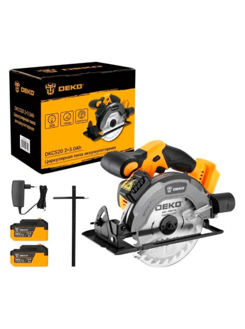 Аккумуляторная циркулярная пила DEKO (3638) DKCS20 20 В, 165 мм, 2х3.0 Ач 063-4024