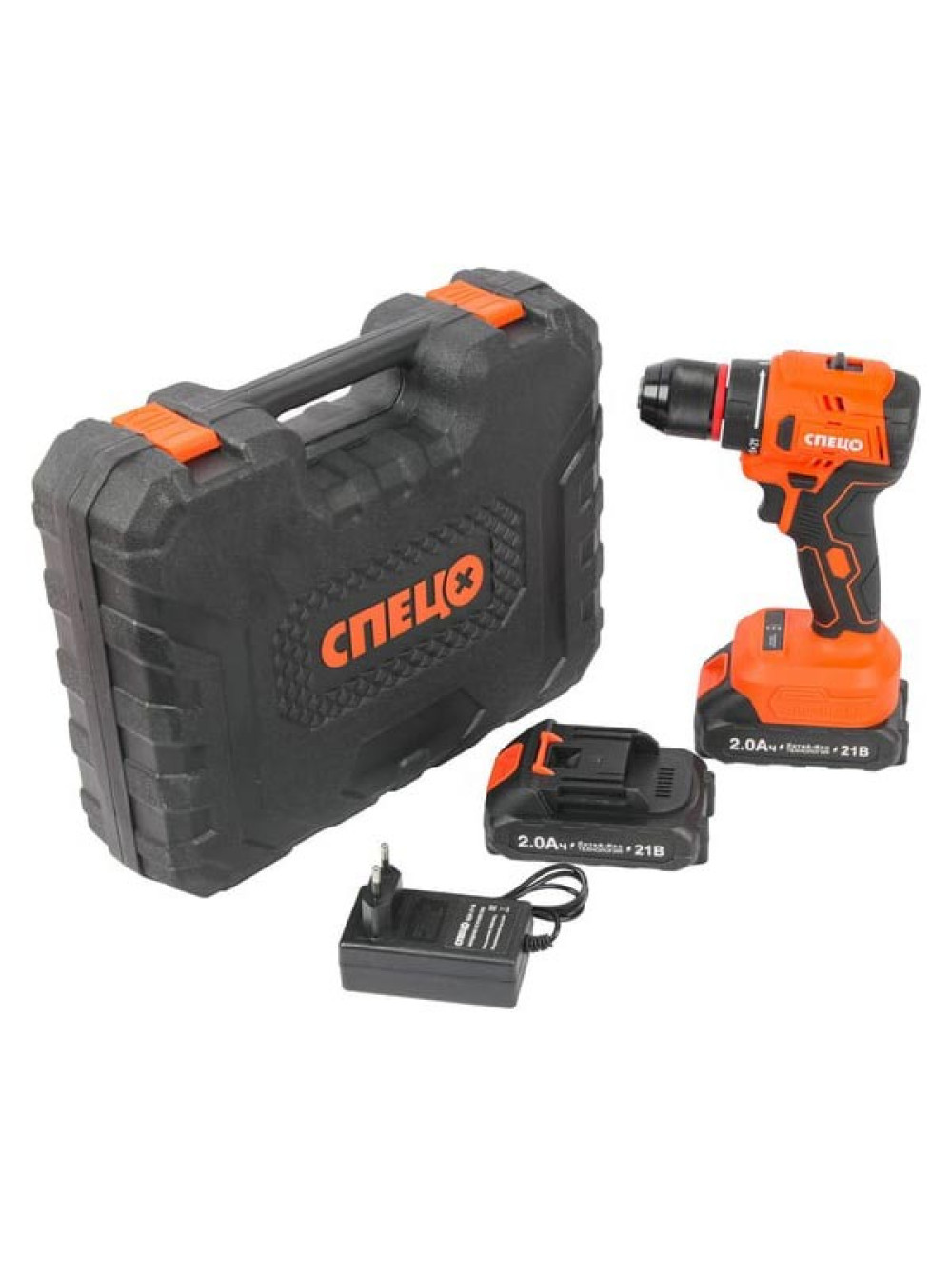 Дрель аккумуляторная Спец БДА-21-Б, (бесщеточный двигатель),21В,2аккум *2,0Ач, Ли-Ион, 0-450/0-1500об/мин,60Нм,реверс,21+1,рег..момента,металл.патрон 10мм,блок.шпинделя,инд.батареи,подсведка,зарядка 4ч,кейс, цв.кор Спец-4131