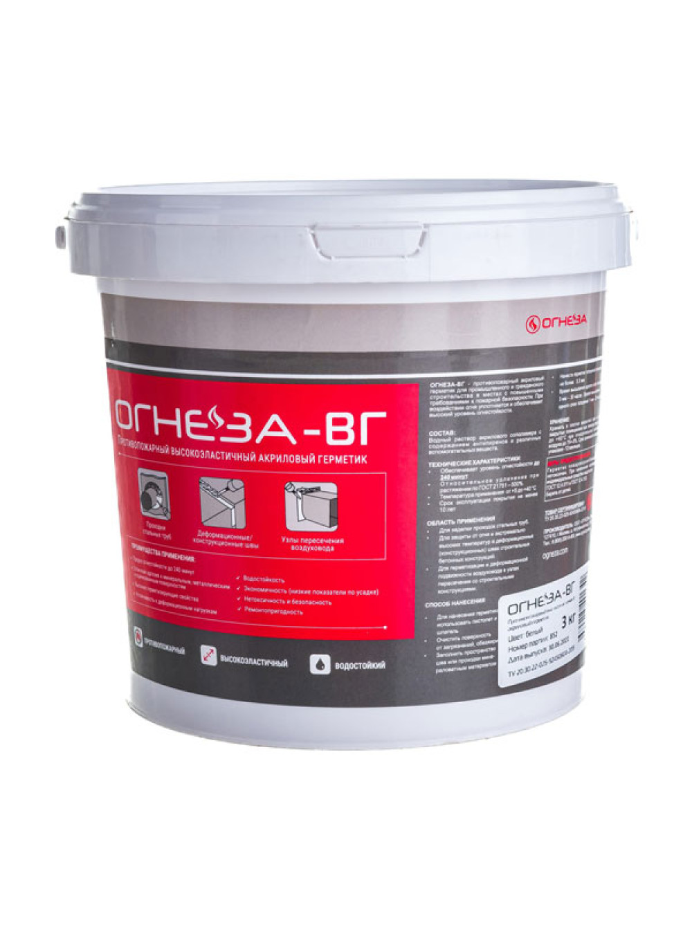 - Огнеза ОГНЕЗА-ВГ, ведро 3 кг., цвет белый 105032 устойчив к деформационным нагрузкам (эластичный). Удлинение при растяжении более 600%
