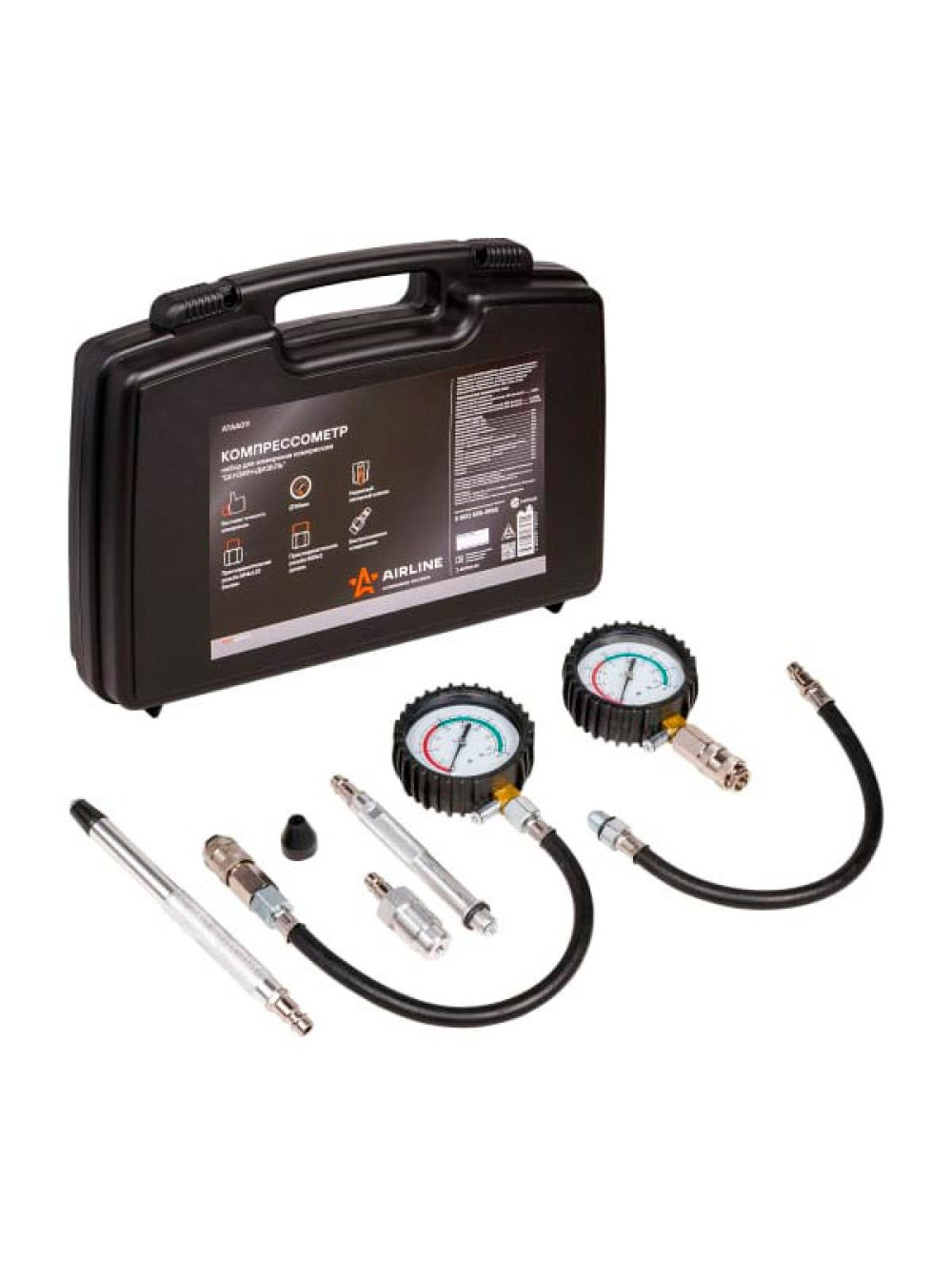 Компрессометр для измерения компрессии AIRLINE PRO Бензин+Дизель набор, кейс ATAA011
