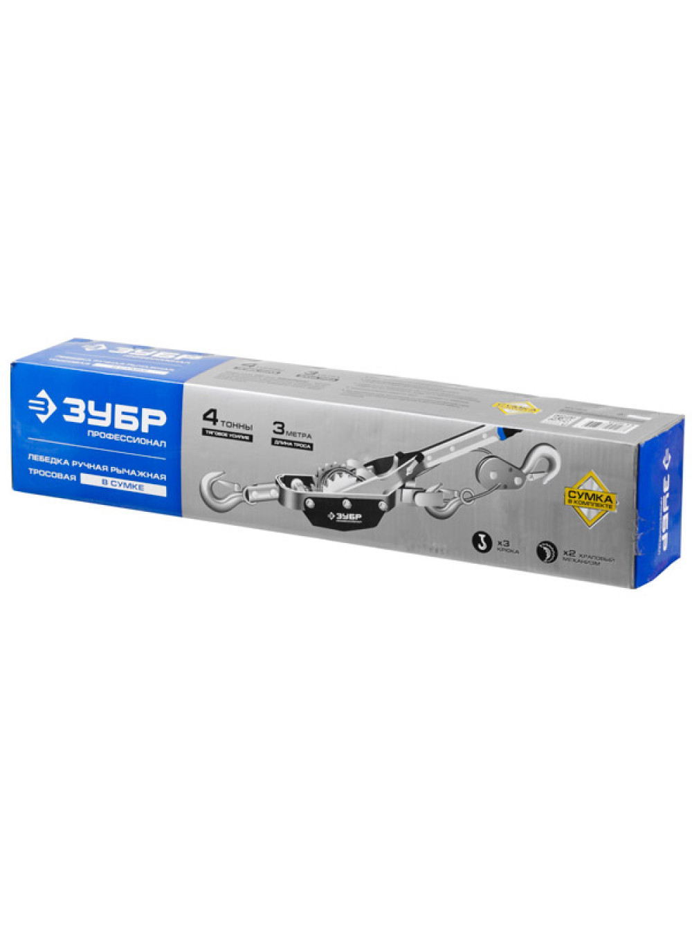 Ручная рычажная лебедка Зубр ПРОФЕССИОНАЛ тросовая 4 т 3 м 43105-4-K