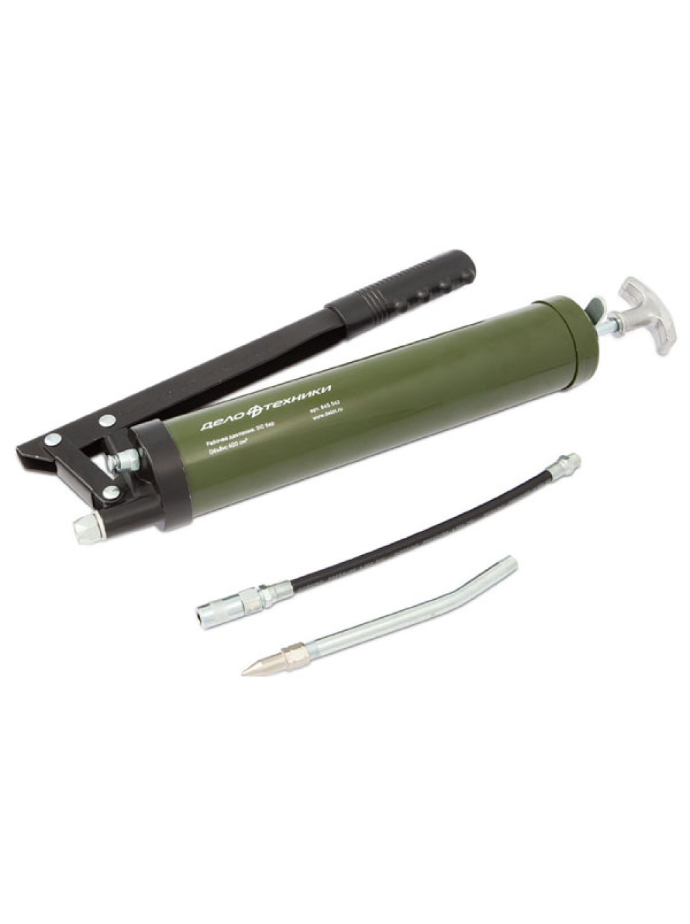 - Комплектуется гибким шлангом и трубкой для подачи смазки в труднодоступные места.