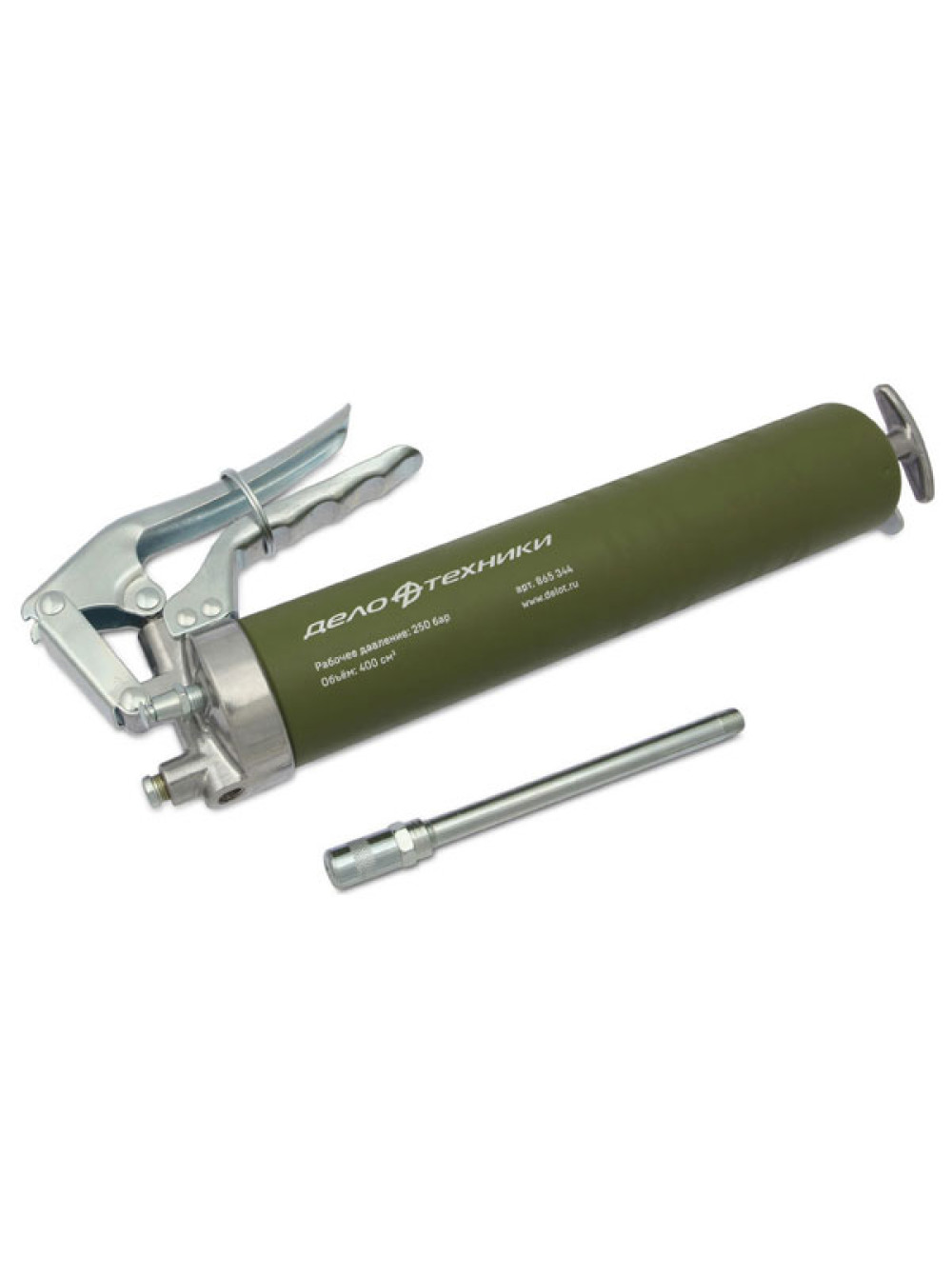 Шприц для смазки Дело Техники плунжерный, пистолетного типа, 400 см3 865344 применяется для нагнетания смазочного материала при обслуживании узлов и агрегатов автомобилей, тракторов, спецтехники, станков и промышленного оборудования требующего смазки.