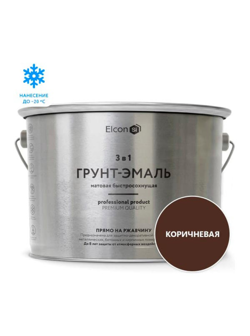 Быстросохнущая грунт-эмаль по металлу Elcon (3 в 1 по ржавчине; матовая; коричневая; 10 кг) 00-00462653