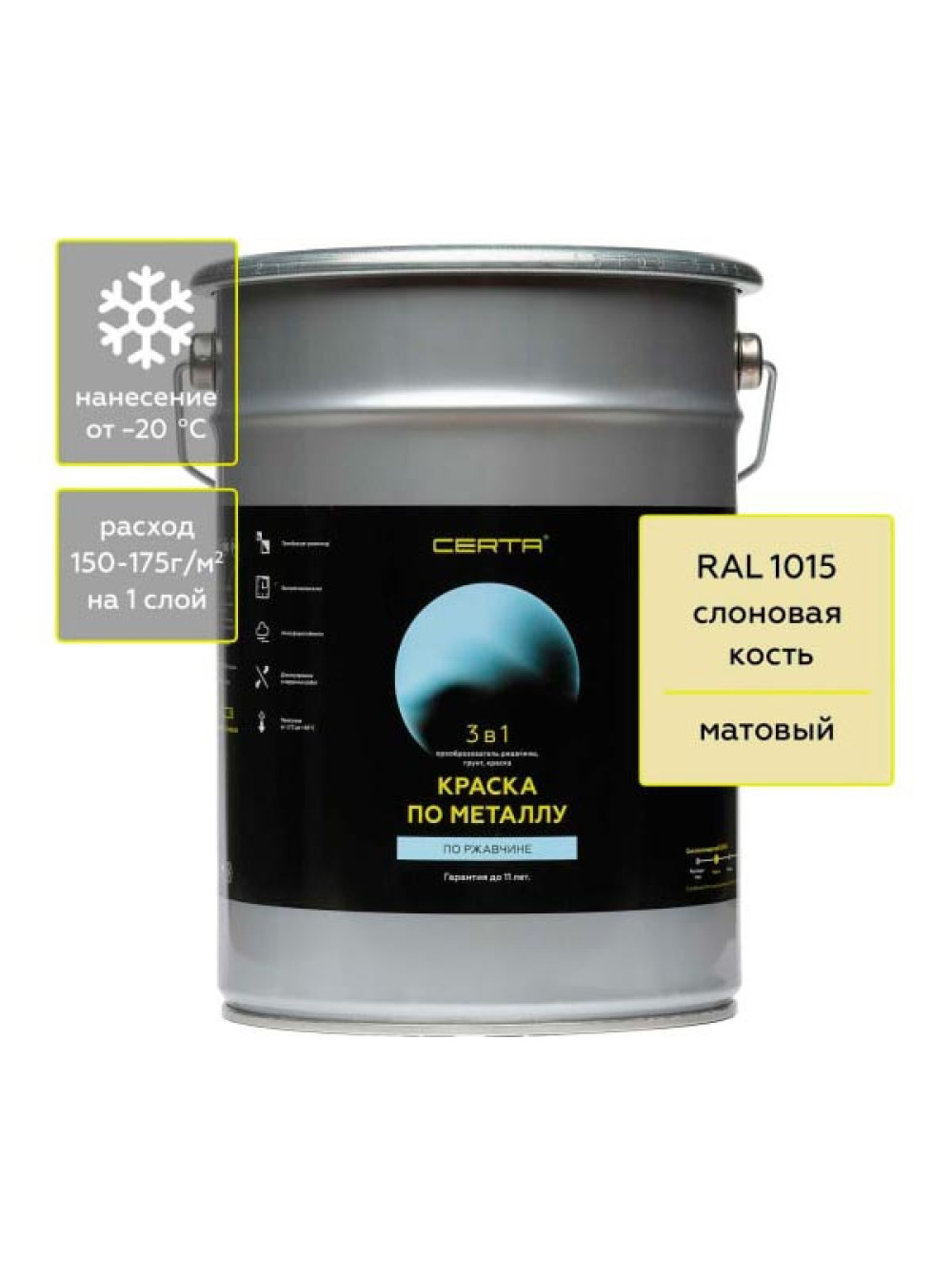Быстросохнущая краска по металлу, ржавчине 3 в 1 Certa матовое покрытие, гладкая, слоновая кость RAL 1015 4 кг KRGL0074