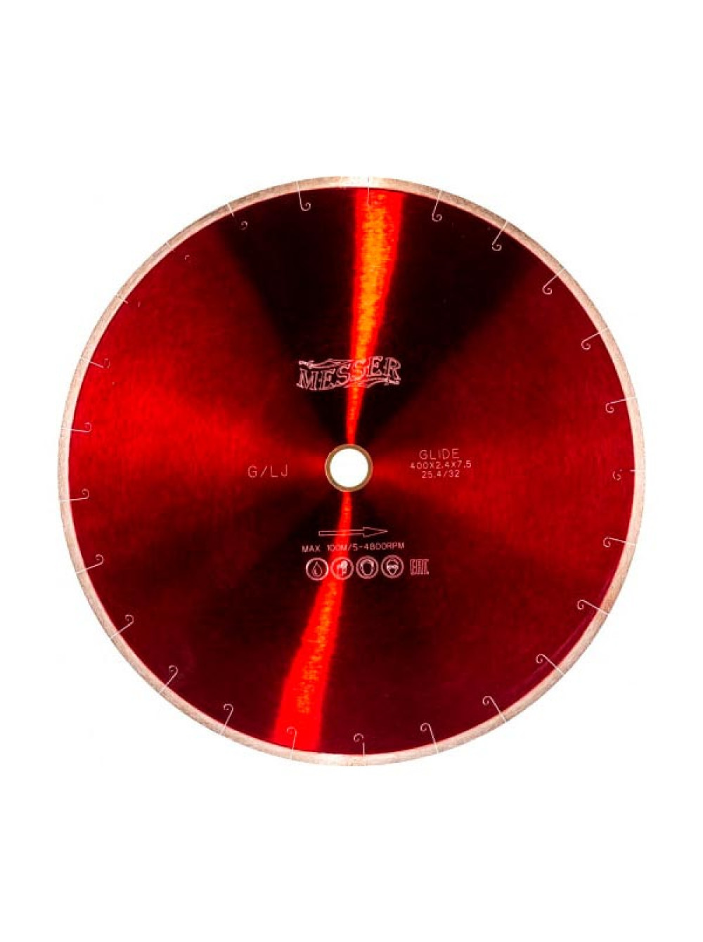 Диск алмазный сплошная кромка с микропазом G/L J-slot по граниту 400D-2.4T-7.5W-32/25.4 MESSER 01-24-400