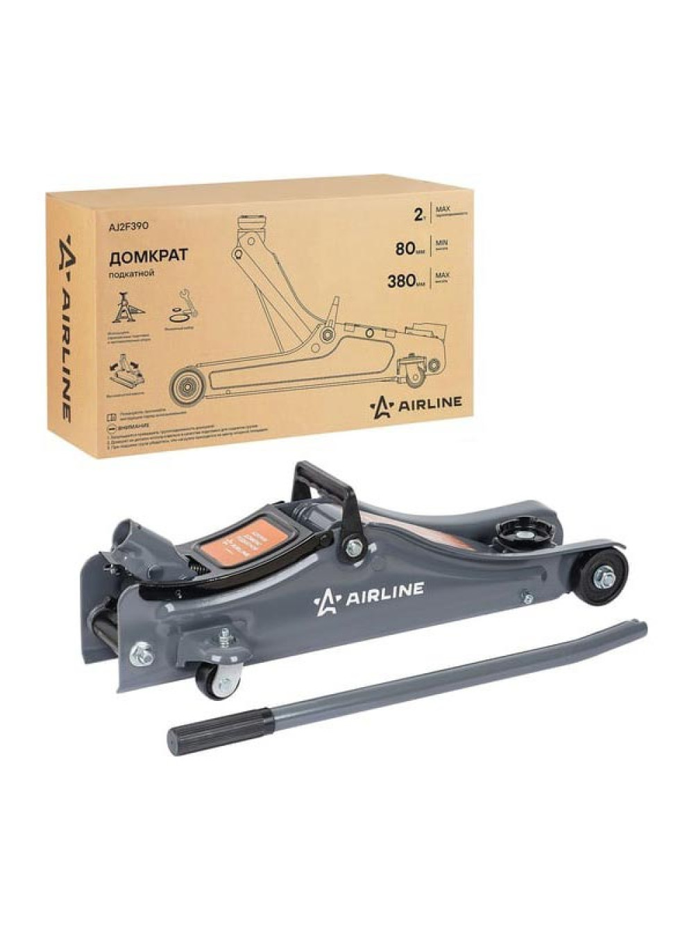 Домкрат подкатной Airline 2т 80-380мм, низкопрофильный AJ2F390