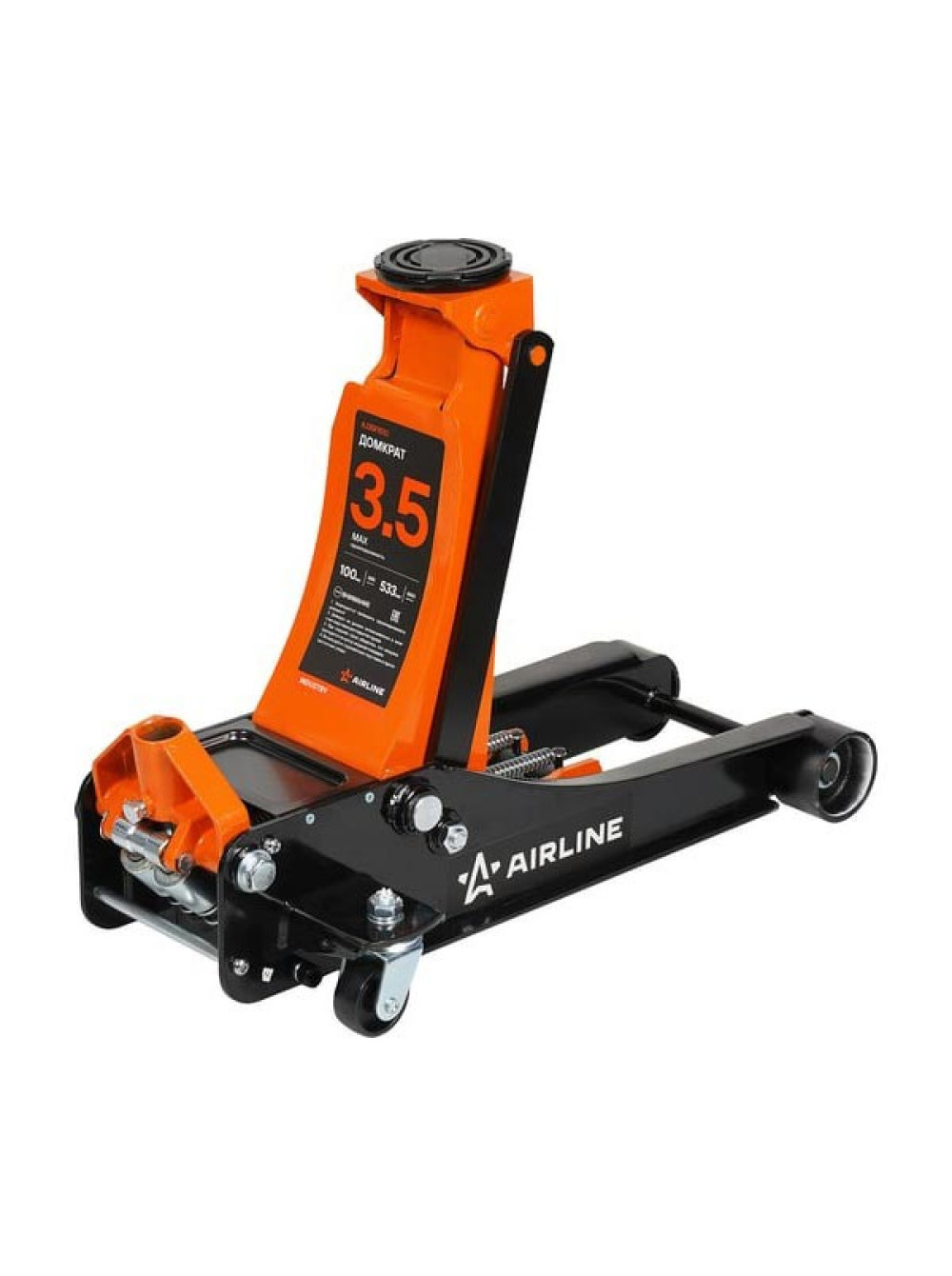 Домкрат подкатной Airline 3.5т INDUSTRY двухпоршневой низкопрофильный (MIN - 100 мм, MAX - 533 мм) AJ35FI510