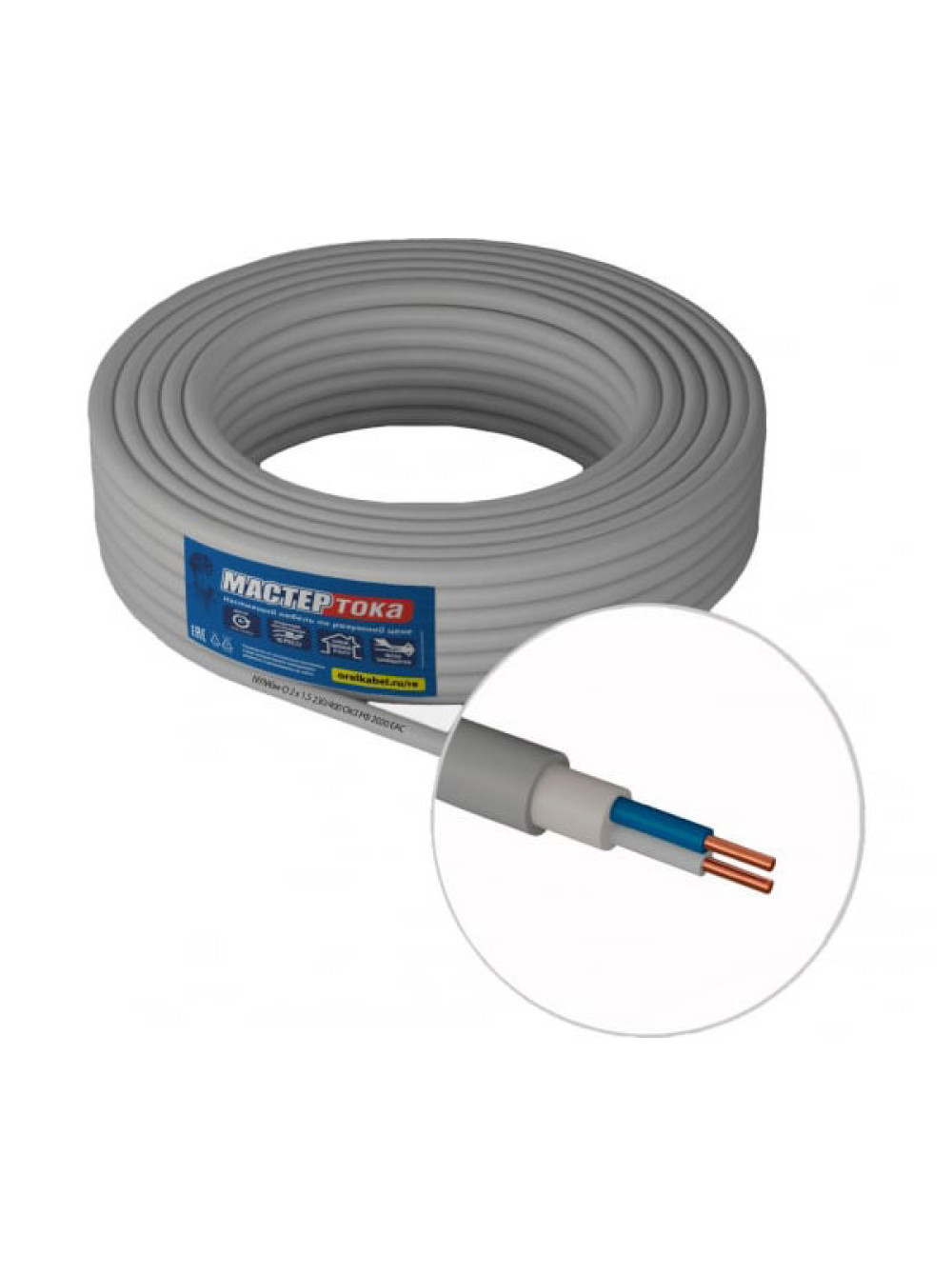 Кабель Мастер Тока NYMбм-O 2х1.5 серый 100м МТ1886