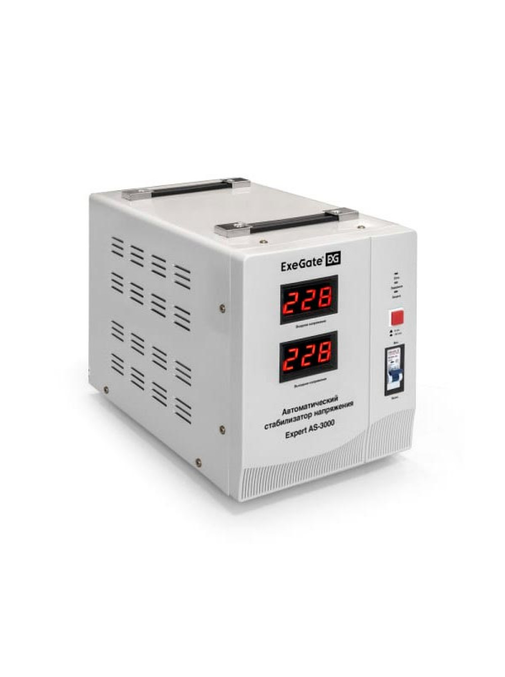 Стабилизатор напряжения ExeGate Expert AS-3000 3000ВА, вход 140-260В, двойная цифр. индикация вход вых. напряжения, выход 220В-8%, КПД 98%, 5 уровней защиты, ме 291724
