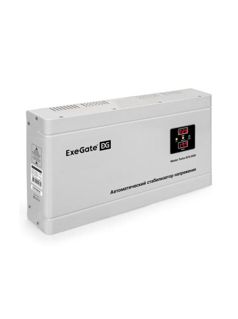 Стабилизатор напряжения ExeGate Master Turbo AVS-5000 5000ВА, 100-265В, цифр. индикация вход вых. напряжения, 220В-8%, КПД 98%, 5 уровней защиты, задержка, усил 291749