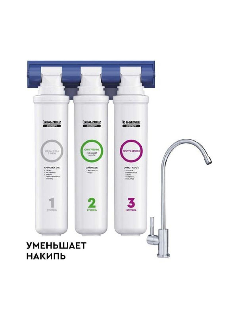 Фильтр под мойку для очистки воды трехступенчатый, быстросъемный Барьер ЭКСПЕРТ Жесткость Н221Р08