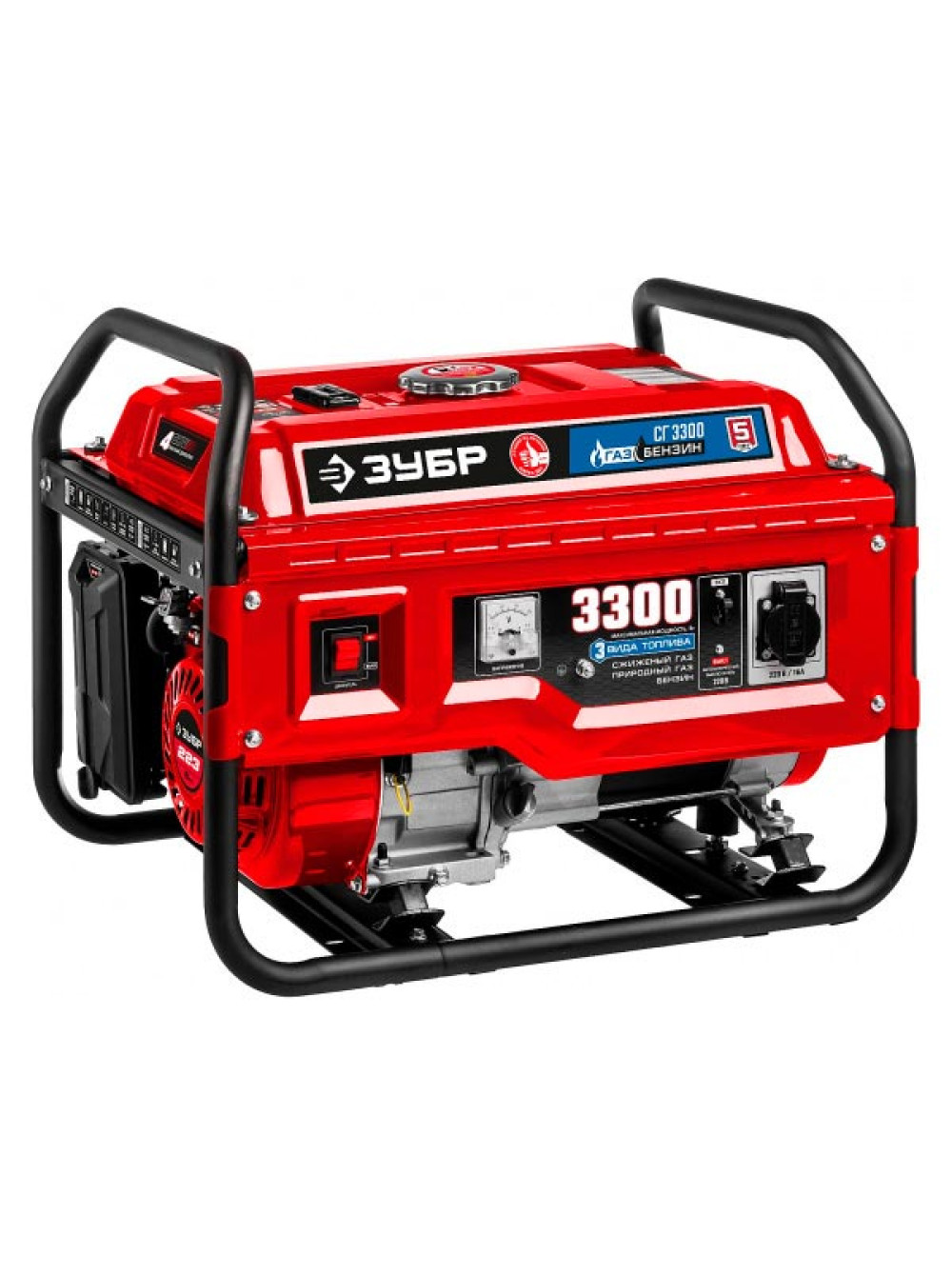Гибридный генератор Зубр бензин/газ, 3300 Вт СГ-3300