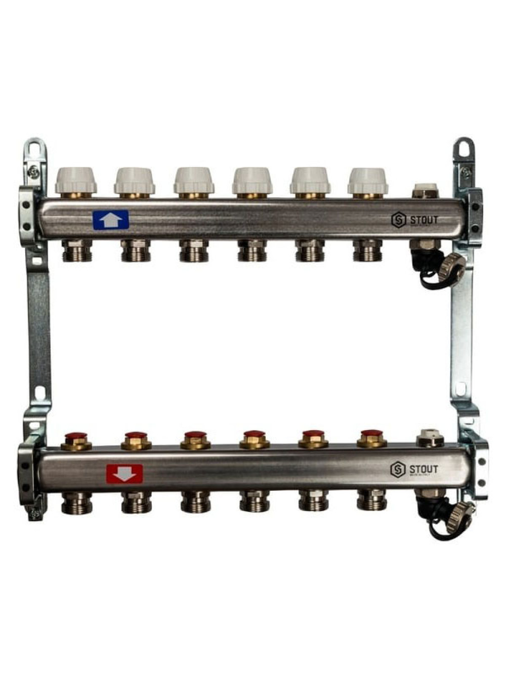 Коллектор из нержавеющей стали без расходомеров, с клапаном выпуска воздуха и сливом STOUT 6 выходов SMS-0932-000006