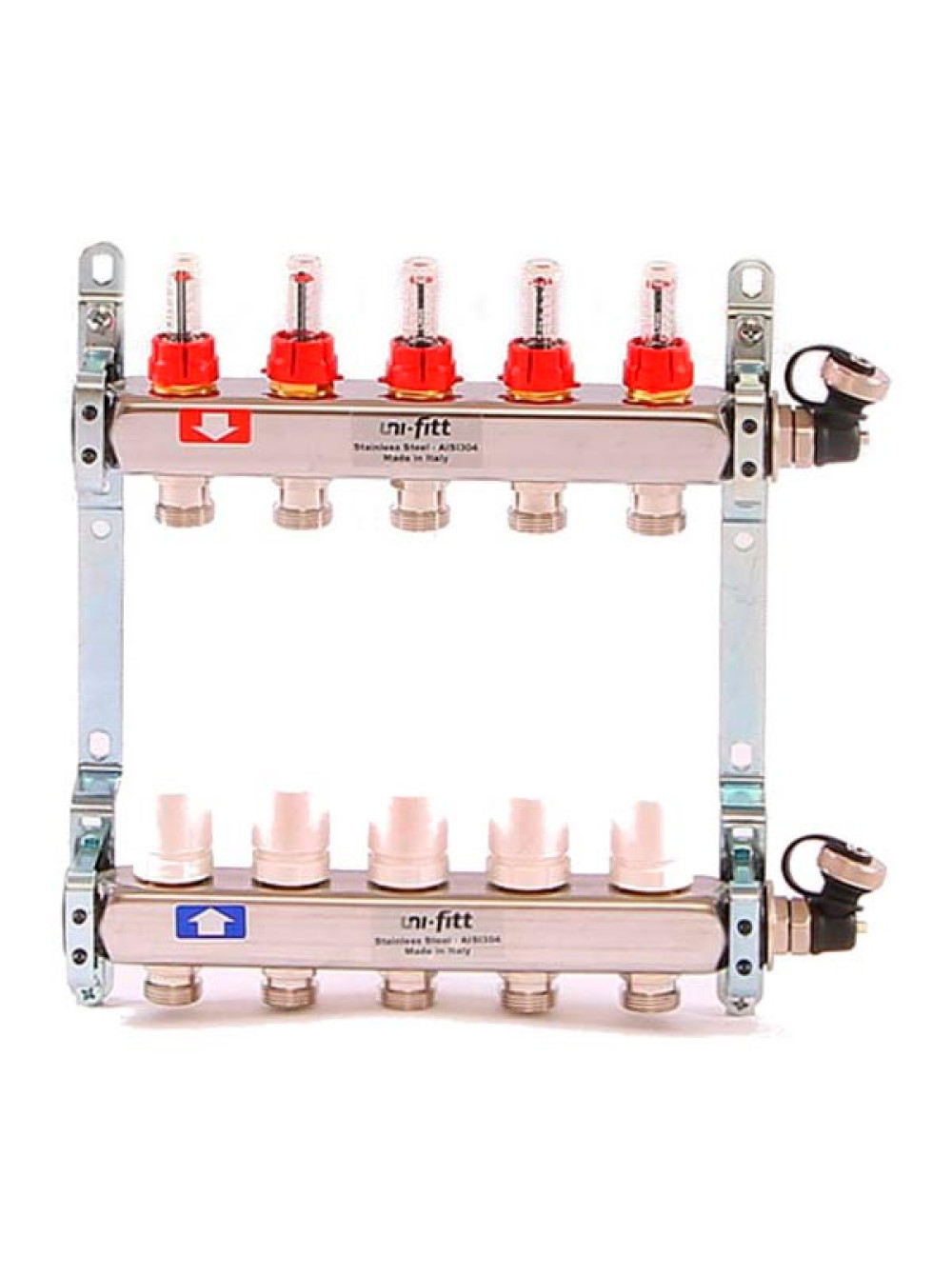 Коллекторная группа 1х3/4, 5 выходов, с расходомерами и термостатическими вентилями, нерж. сталь Uni-Fitt 450I4305