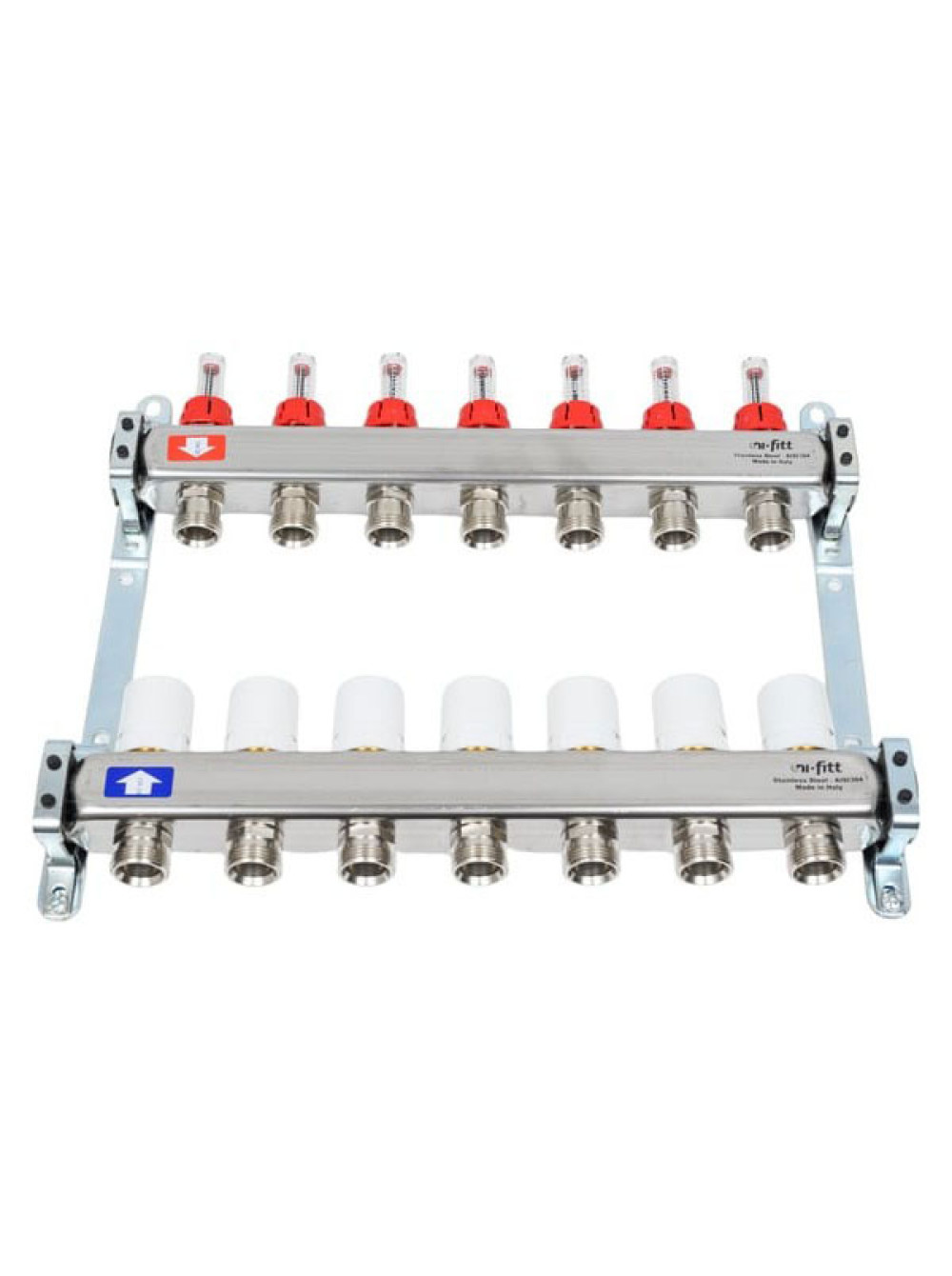 Коллекторная группа 1х3/4, 7 выходов, с расходомерами и термостатическими вентилями, нерж. сталь Uni-Fitt 450I4307
