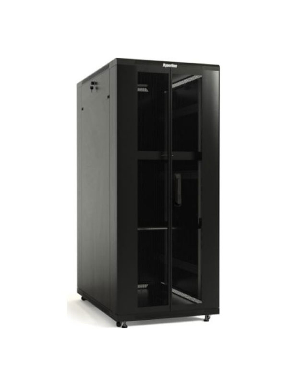 Напольный 19-дюймовый шкаф Hyperline 47U, 2277x600x800 мм, передняя и задняя распашные перфорированные двери, ручка с замком, крыша нового типа, черный, разобранный 392