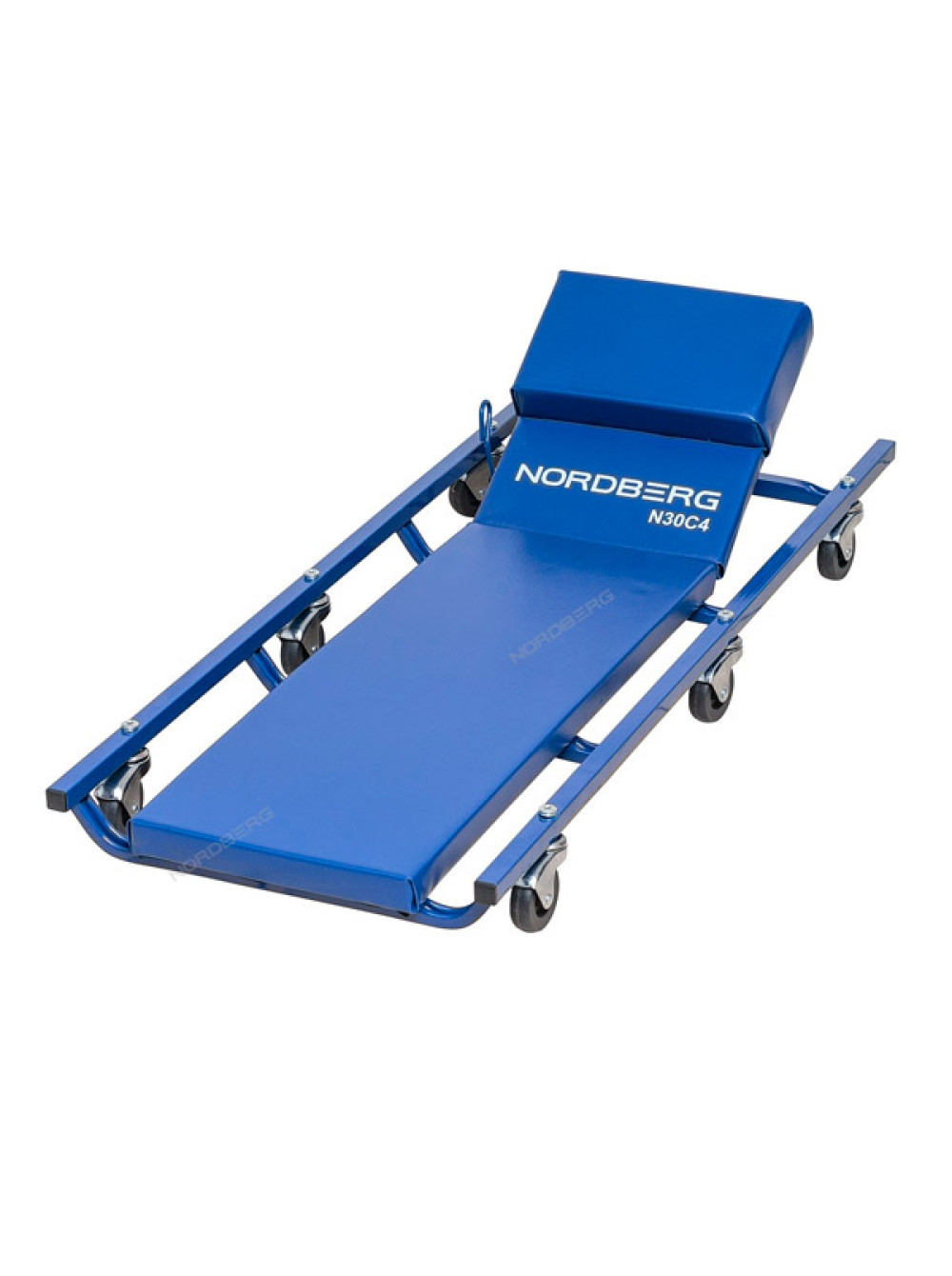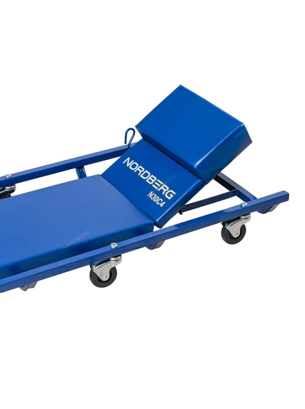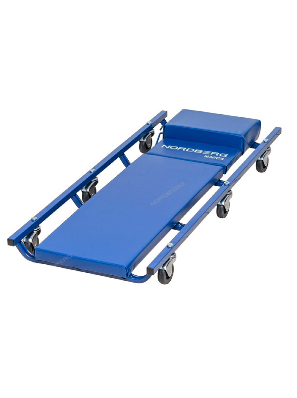 Лежак автослесаря подкатной с откидным подголовником NORDBERG N30C4 прочная металлическая основа и мягкий поролоновый матрац регулируемый подголовник 6 колес на шарикоподшипниках