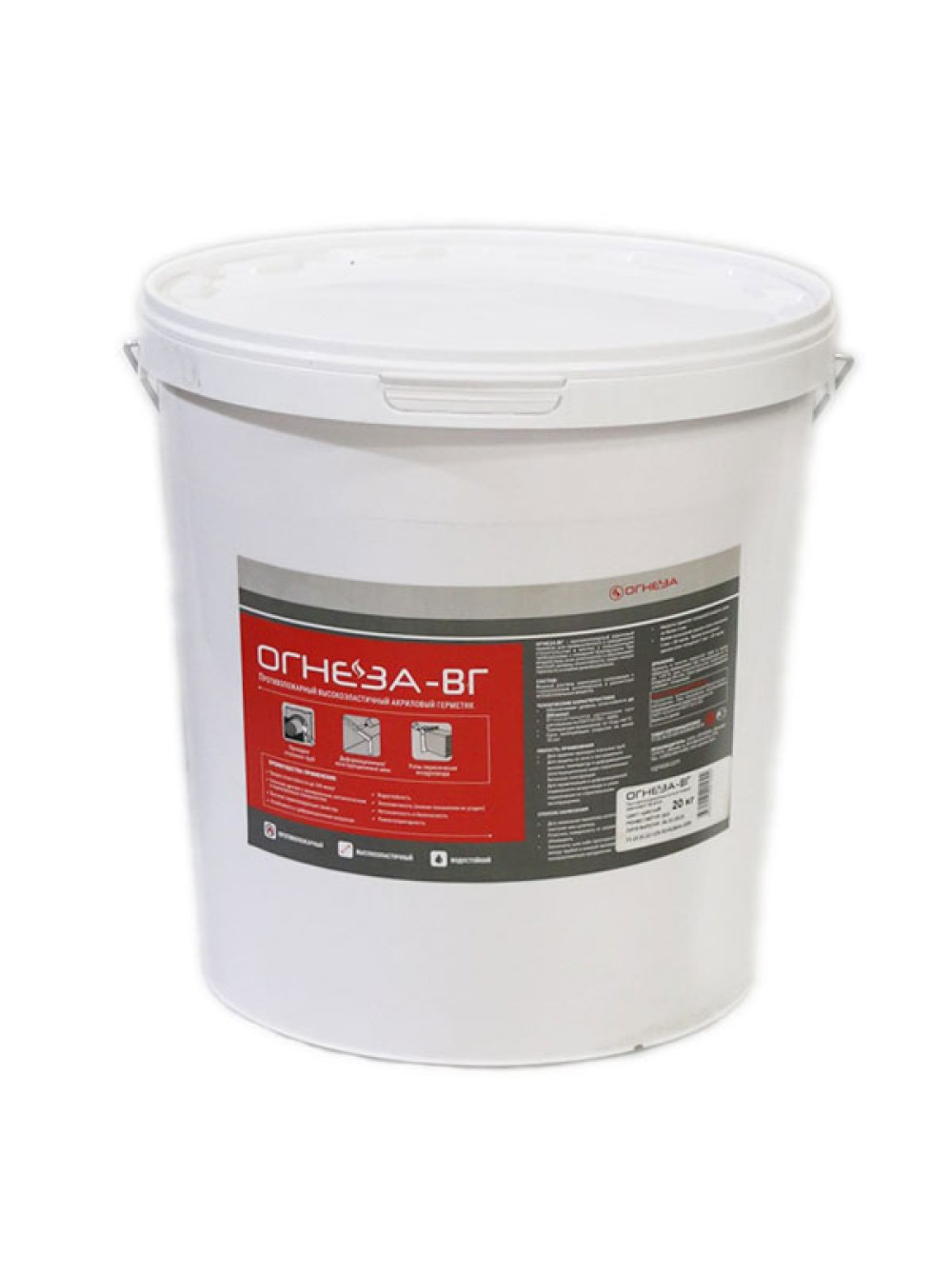 - ОГНЕЗА-ВГ, ведро 20 кг, цвет белый 105035 устойчив к деформационным нагрузкам (эластичный). Удлинение при растяжении более 600%