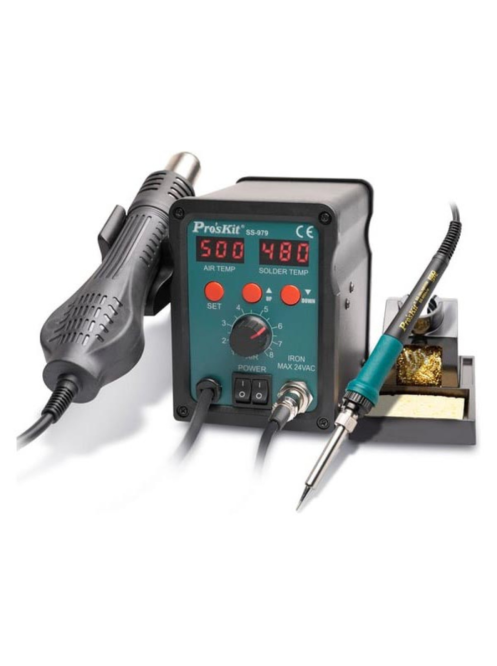 Паяльная станция цифровая двухканальная ProsKit SS-979B (паяльник 60Вт, фен 120л/мин, LED-индикация, антистатическая защита) С00040315