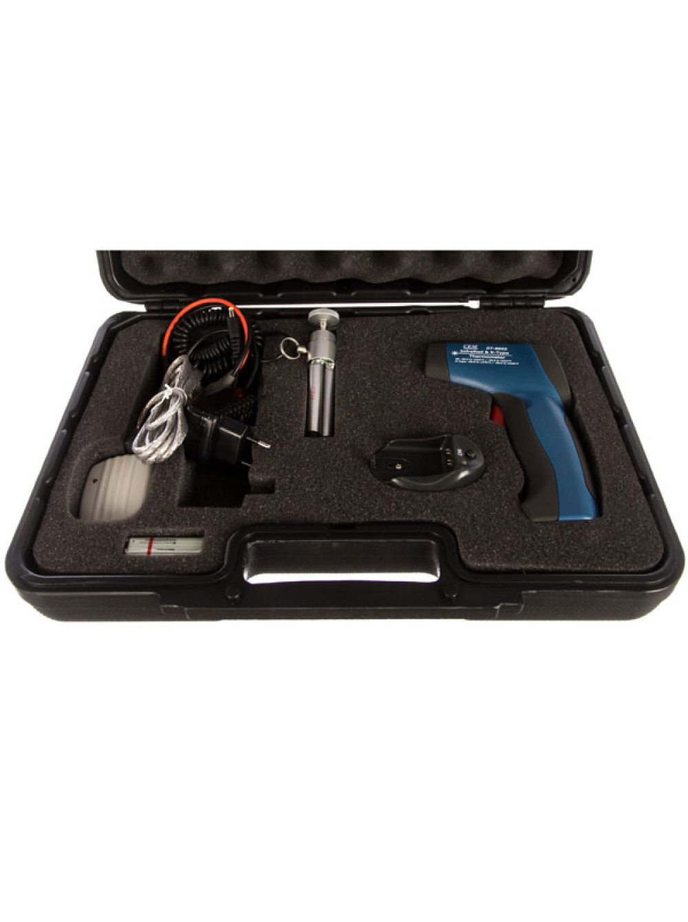 Пирометр СЕМ DT-8855 480762 позволяет отслеживать температуру при помощи термопары (от -50 до +1370 градусов) и ИК-датчика (от 50 до 1000 градусов). Прибор отличается быстродействием: время измерения составляет менее 1 секунды. Для прицельного наведения модели на исследуемый объект в корпус встраивается лазер 2 класса мощностью менее 1 мВт с длиной волны 630-670 нм. Для удобства в работе есть режим непрерывного измерения.