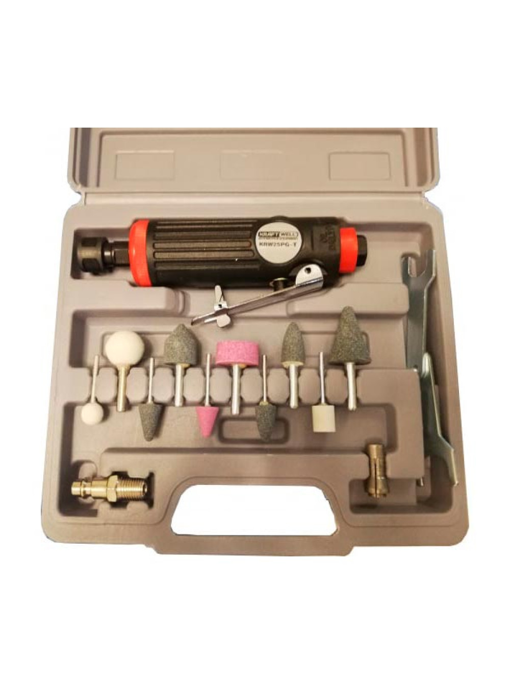 Пневматическая бормашинка KraftWell с набором насадок, в кейсе KRW25PG-T