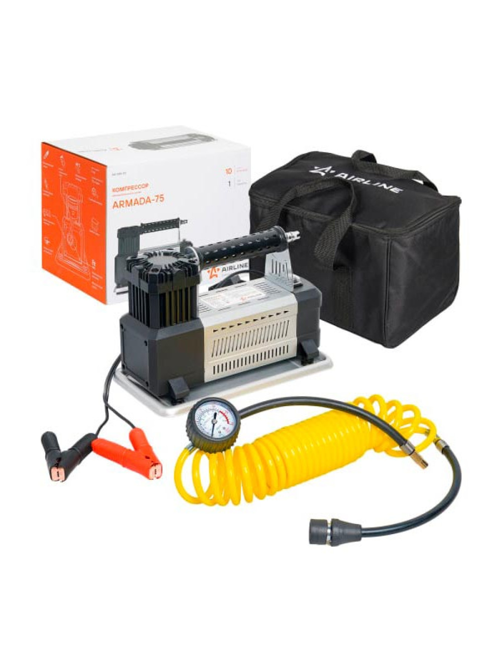 Компрессор AIRLINE ARMADA-75 в сумке, шланг-гармошка 5 м CA-030-03