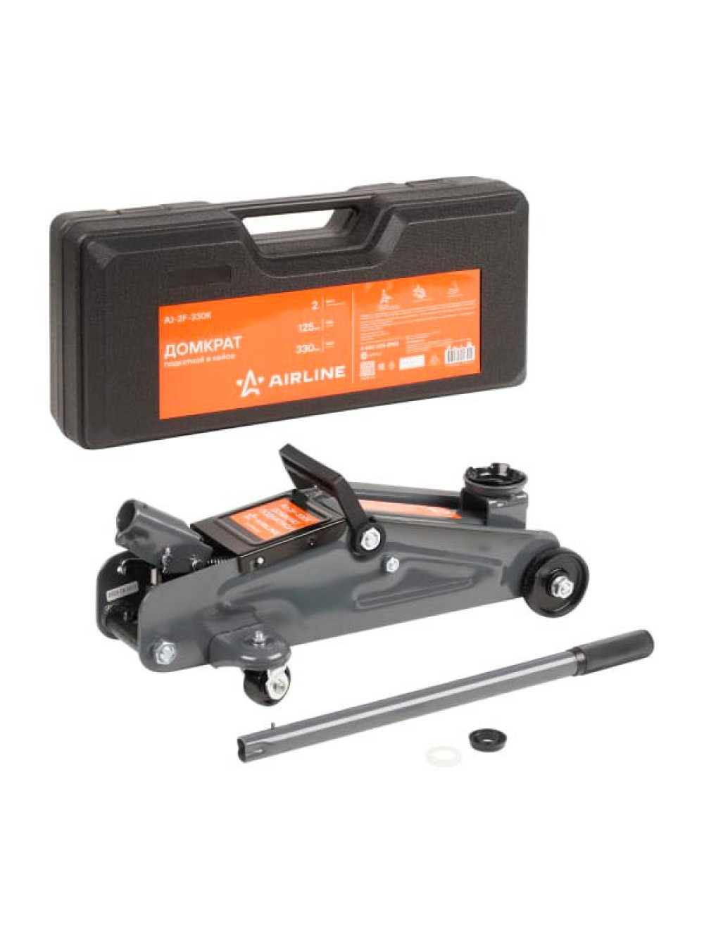 Подкатной домкрат AIRLINE 2 т, в кейсе, MIN - 135 мм, MAX - 330 мм AJ-2F-330K