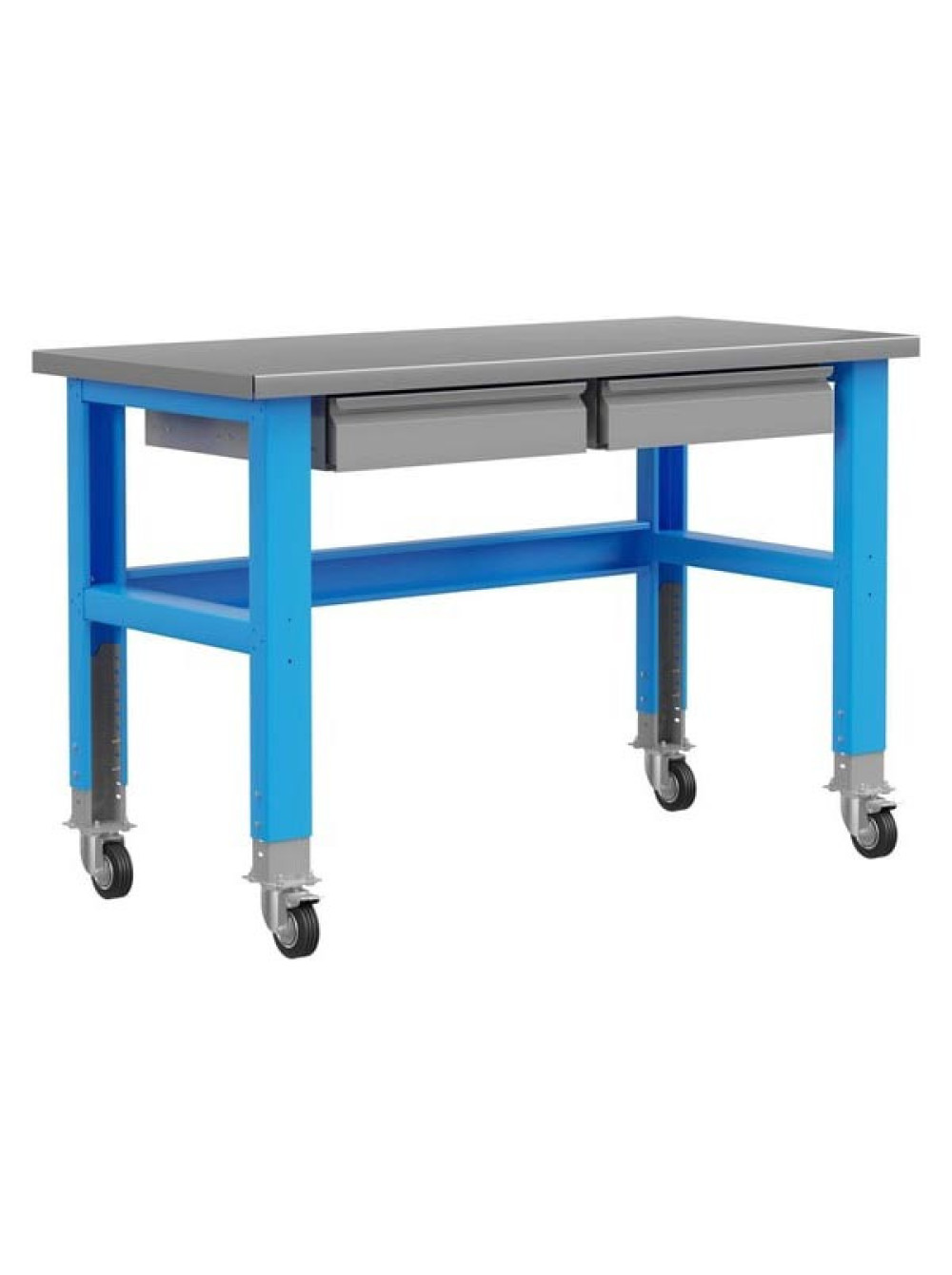 Промышленный металлический стол на колесах 1500 мм Верстакофф PLC 2 выдвижных ящика 115012