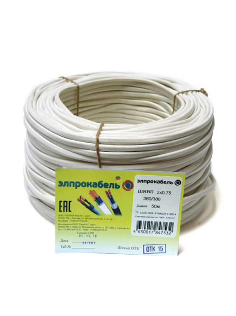 Провод ЭлПроКабель гибкий плоский ШВВП 2х0,75 100м ГОСТ 4630017847525