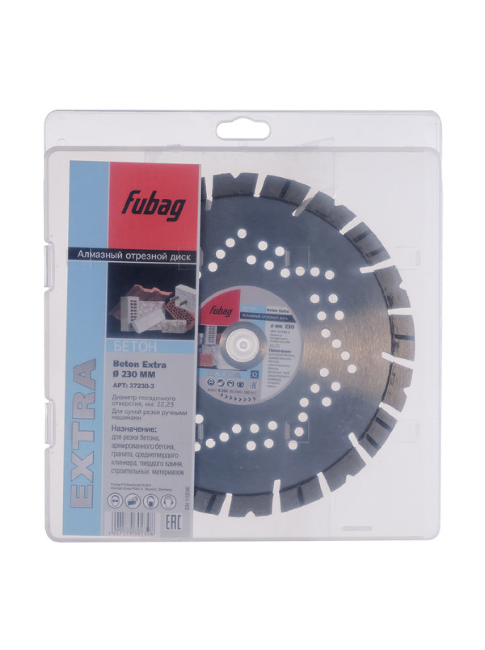 Диск алмазный Beton Extra (230 мм; 22.2 мм) FUBAG 37230-3 предназначен для использования совместно с угловыми шлифовальными машинами. Применяется для сухой резки бетона, армированного бетона и твердого камня. Отличается высокой производительностью и долговечностью за счет алмазного слоя.