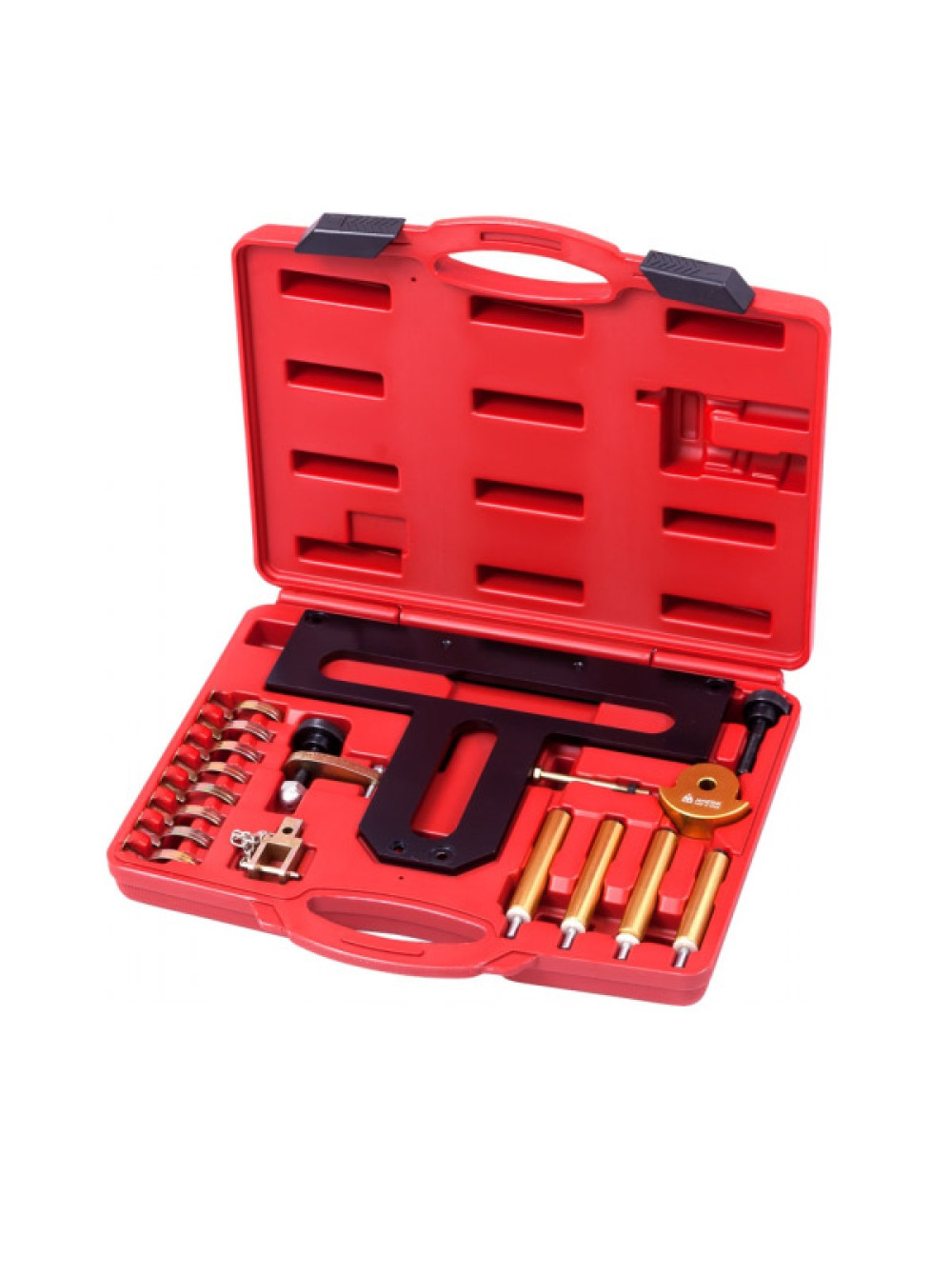 Набор фиксаторов распредвала / коленвала, BMW, кейс, 17 предметов МАСТАК 103-21204C предназначен для ремонта головки блока цилиндров автомобилей BMW двигателей N42/N46, для снятия и установки промежуточных рычагов, что влечет за собой снятие распределительных валов с головки блока. Инструмент расположен в пластиковом кейсе для комфортного хранения и транспортировки. В комплекте: Приспособление для фиксации эксцентрикового и распределительного валов относительно друг друга. Используется на двигателях BMW: N42, N46, N46T. OEM номер: 11 9 300 (119300). Механические приспособления для фиксирования промежуточных рычагов (8 шт.). OEM номер: 11 9 310 (119310). Специальное приспособление, на котором фиксируется опорная перемычка вместе с распредвалом впускных клапанов. OEM номер: 11 9 320 (119320).