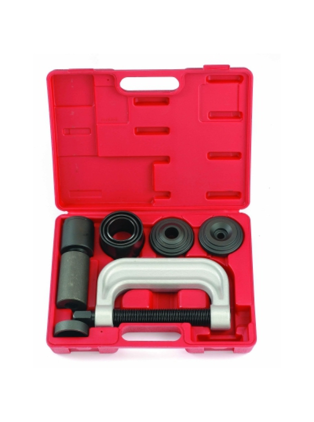 Снятие или установка множества типов сайлентблоков рычагов, стабилизаторов поперечной устойчивости, реактивных тягах, крепления амортизаторов и т.д. Оправки применяются также для монтажа/демонтажа подшипников, шарниров, шаровых опор, крестовин карданов, опорных пальцев тормозных колодок грузовиков. Набор позволяет сократить рабочее время и избежать повреждений деталей и узлов автомобиля. Область применения: Автосервисы, СТО. Комплектация: 1 шт - Струбцина С-образная силовая размер зева 165 мм 1 шт - Силовой болт длина 220 мм, резьба 3/4"-16, размер под ключ 22 мм 1 шт - Втулка трубчатая Ø 75 мм, длина 57 мм 1 шт - Втулка трубчатая Ø 63 мм, длина 45 мм 1 шт - Втулка трубчатая Ø 50 мм, длина 45 мм 1 шт - Втулка глухая с отверстием Ø 50 мм, длина 94 мм, глубина 77 мм 1 шт - Втулка глухая с отверстием Ø 57 мм, длина 64 мм, глубина 50 мм 2 шт - Адаптеры для втулок - 1 шт - Адаптер малый Ø 57 мм наружн., Ø 46,5 мм внутр. Технические характеристики: Материалы Инструментальная сталь, оксидированное покрытие Вес, кг 7,5