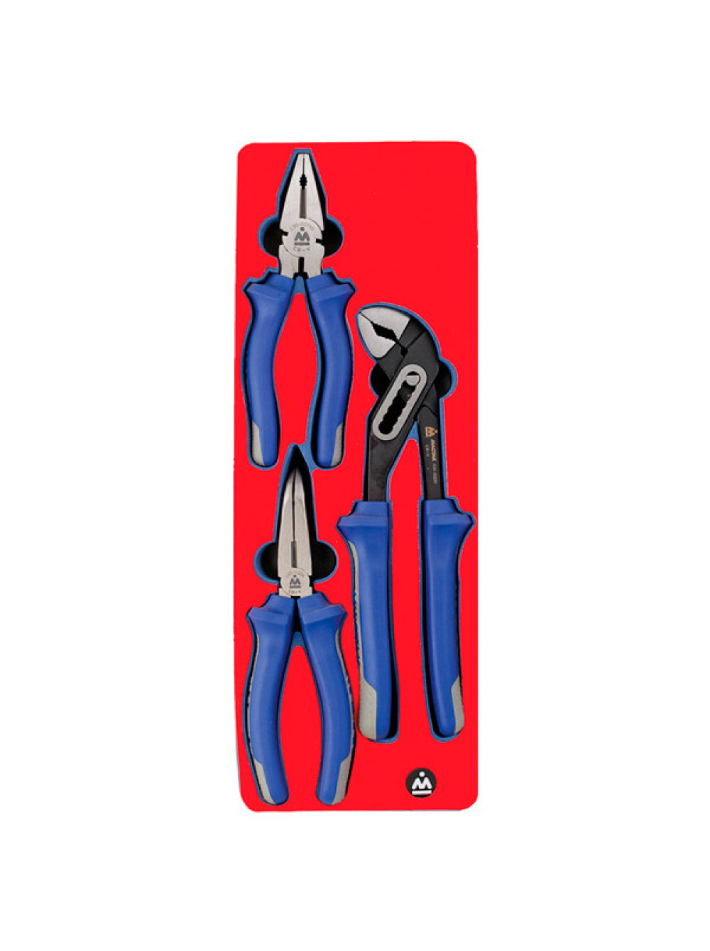 Набор пассатижей, плоскогубцев и бокорезов, ложемент, 3шт МАСТАК 5-3003 используется для укомплектовывания передвижных инструментальных тележек или слесарных верстаков при создании персональных рабочих мест для мастеров на СТО, в автосервисах, различных мастерских и на предприятиях. Данные приспособления станут надежными помощниками в сфере ремонта и обслуживания различных механизмов и агрегатов. Инструменты выполнены из прочного материала EVA.