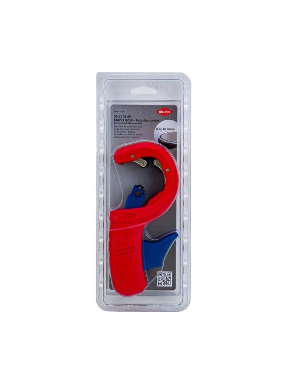 Труборез для канализационных пластиковых труб DP50 32/40/50 мм, толщина max 2.4 мм, длина 202 мм, BK KNIPEX KN-902301BK