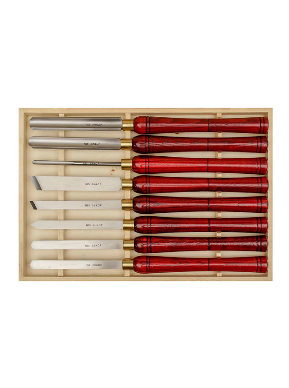 Резцы в наборе Энкор 10430 различного профиля, изготовлены из быстрорежущей стали.
