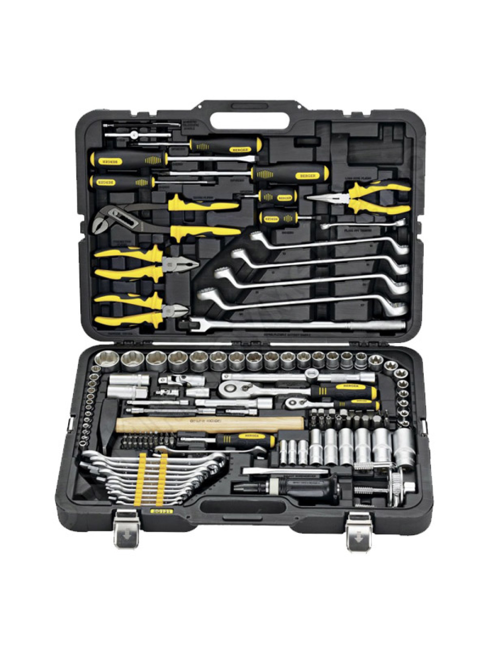 Универсальный набор инструментов Berger BG 131 предмет BG131-1214 предназначен для проведения ремонтных и технических работ по обслуживанию автомототехники. Комплект состоит из 131 предмета. Рабочие части выполнены из высокопрочной хромованадиевой стали. В качестве материала для ручек использован резинопластик. Поставляется набор в кейсе на защелках.
