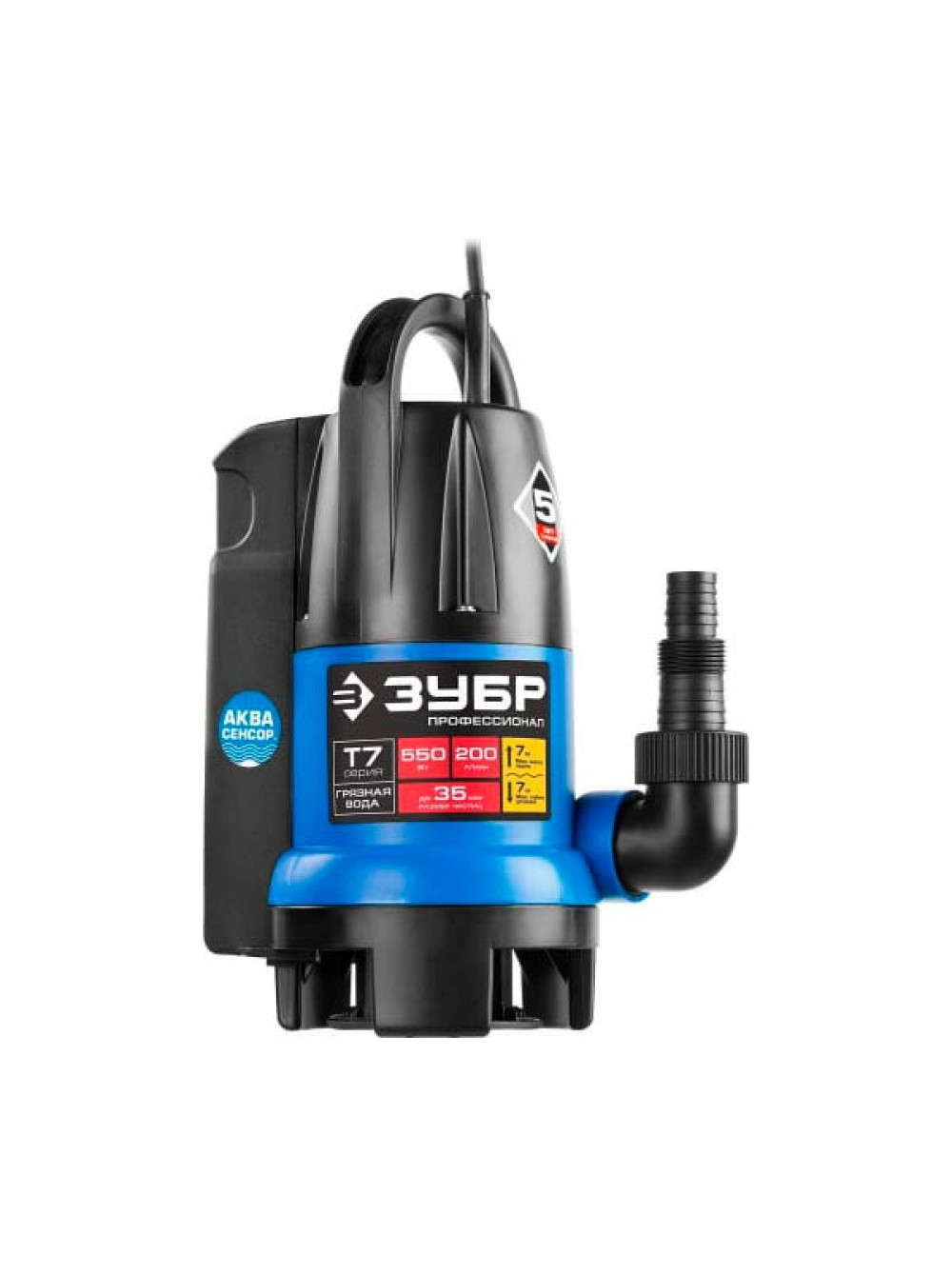 Погружной дренажный насос для грязной воды Зубр Профессионал Т7 АкваСенсор НПГ-Т7-550