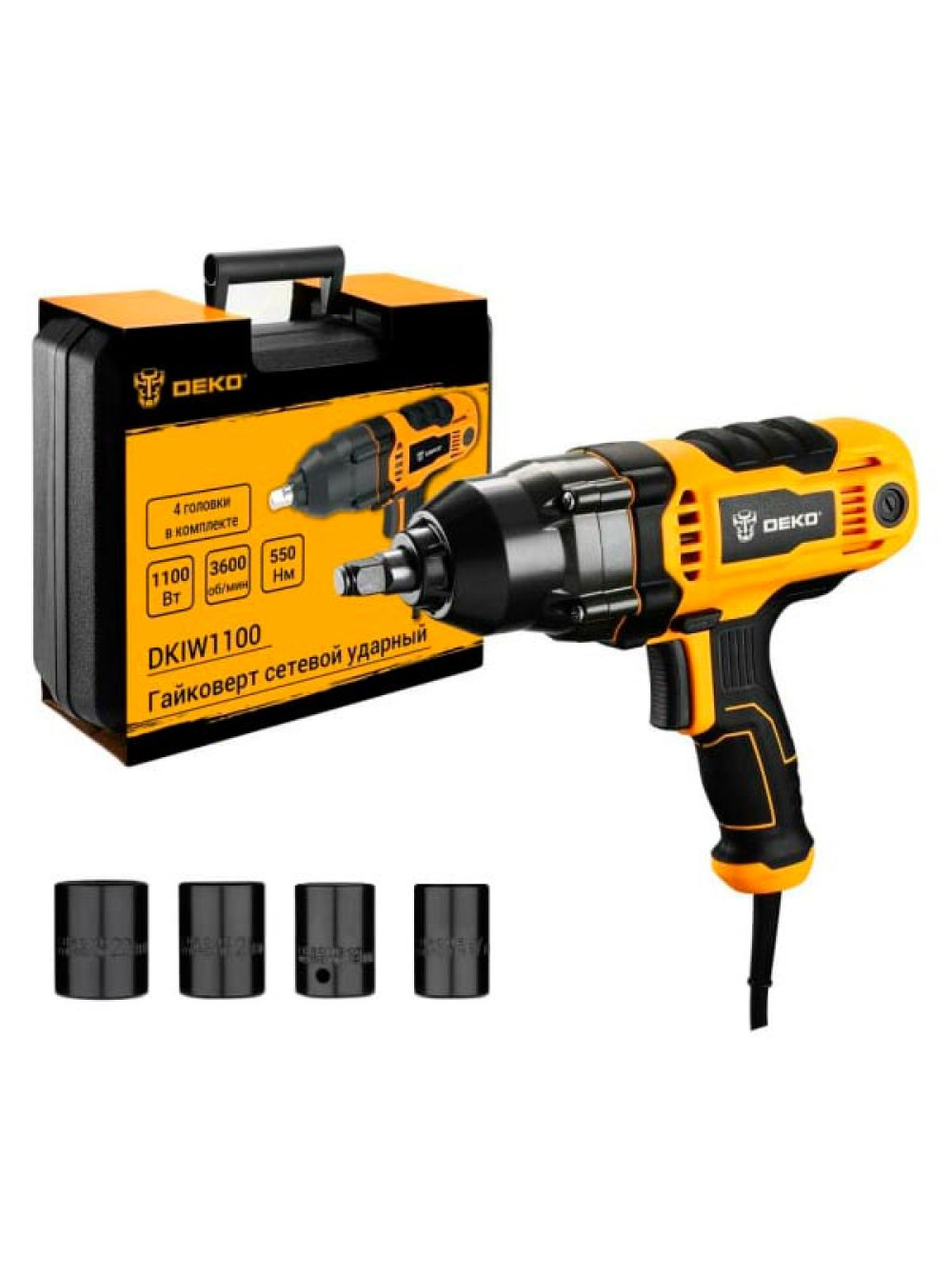 Сетевой ударный гайковерт DEKO DKIW1100, 1100 Вт, 550 Нм 063-3004