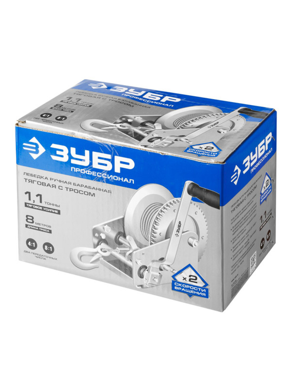 Ручная барабанная лебедка Зубр ПРОФЕССИОНАЛ тросовая 1,1т 8м 43113-1.1