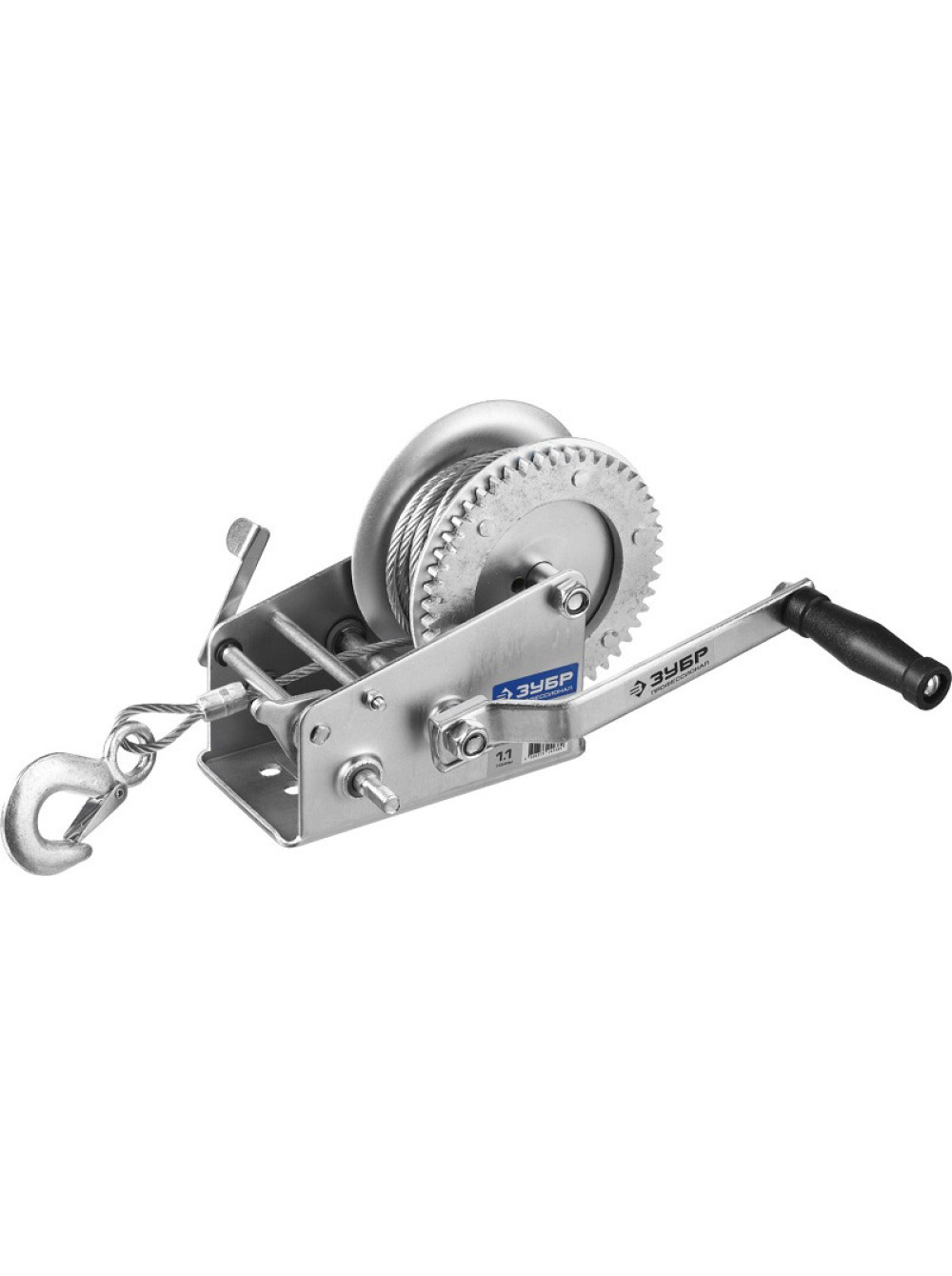 - Крюк ручной барабанной лебедки Зубр ПРОФЕССИОНАЛ тросовая 1,1т 8м 43113-1.1_z01 изготовлен из специальной углеродистой стали и закален.