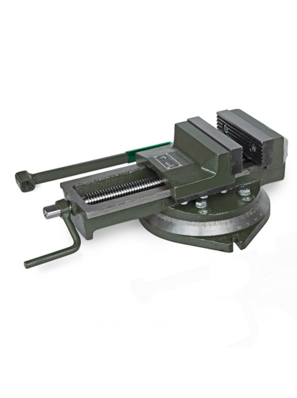- Шкала, нанесенная на основание тисков, для точного определения угла поворота;