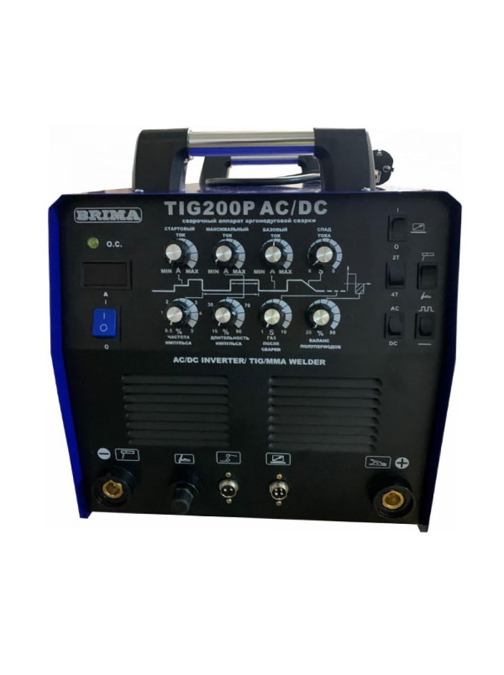 Инверторная установка BRIMA TIG-200P AC/DC используется для сварки алюминия и его сплавов в режиме AC (переменный ток) и для сварки углеродистой, нержавеющей и легированной сталей в режиме DC (постоянный ток). Инвертор может работать в 2-х режимах: MMA и TIG. Особенностью аппарата является стабильная дуга и низкий уровень шума при сварке.