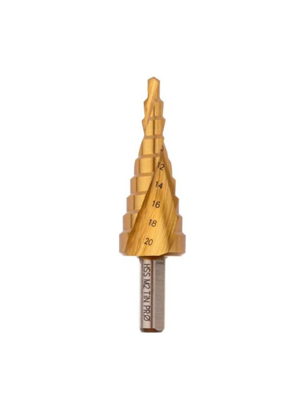Сверло ступенчатое по стали (4-20 мм, 9 ступеней, HSS-G M2 TIN, хвостовик 8 мм) Профоснастка № 3313 30106013