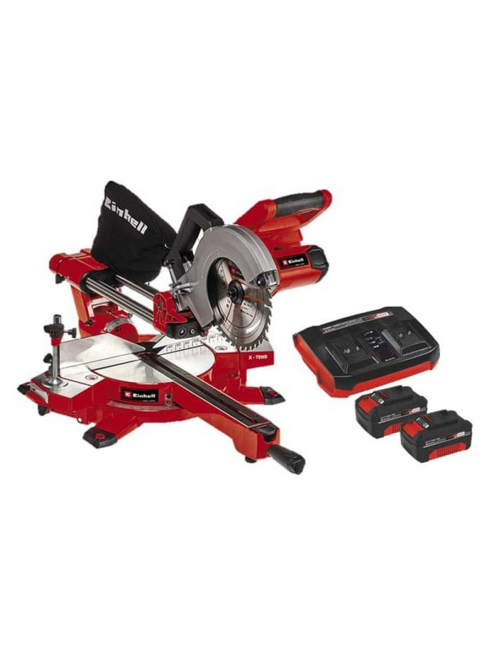 Торцовочная аккумуляторная пила Einhell PXC TE-SM 36/210 Li,2х18В, 210х30 мм, пр-л 310х65 мм, лазер+2 аккумулятора, 4Ач+двойное ЗУ 4300880SET