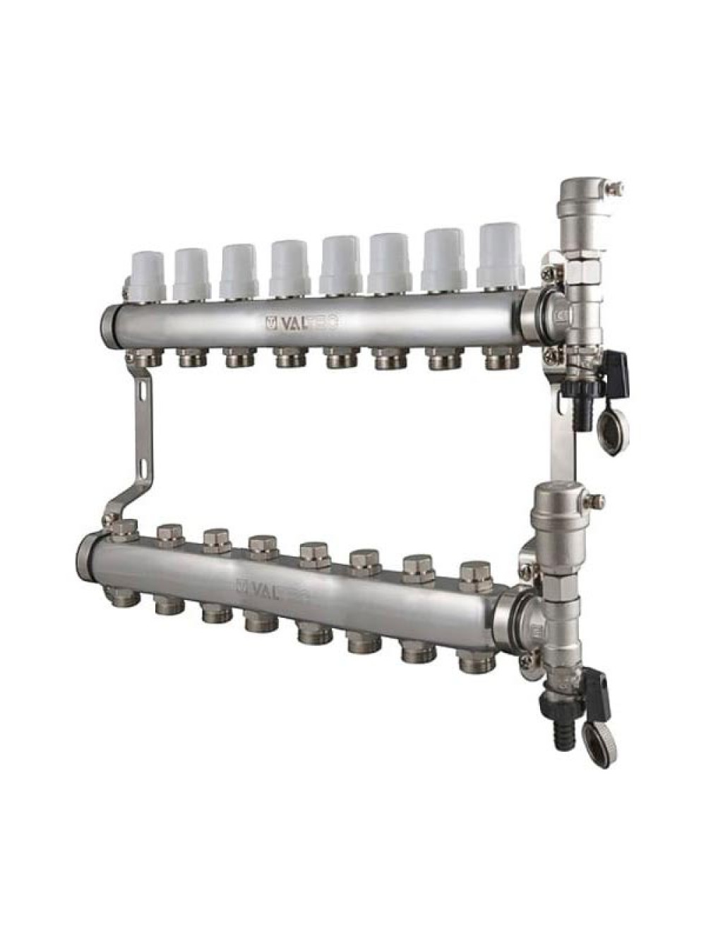 Коллекторная группа VALTEC 1x8 выходов евроконус 3/4" нержавеющая сталь в сборе VTc.588.EMNX.0608